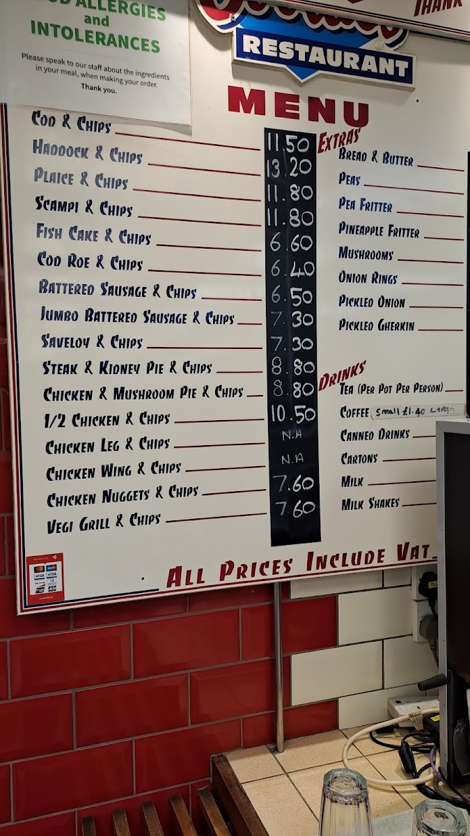 - NJ B highlights the deliciousness of the food, with particular mention of the cod and chips, coupled with a friendly atmosphere.